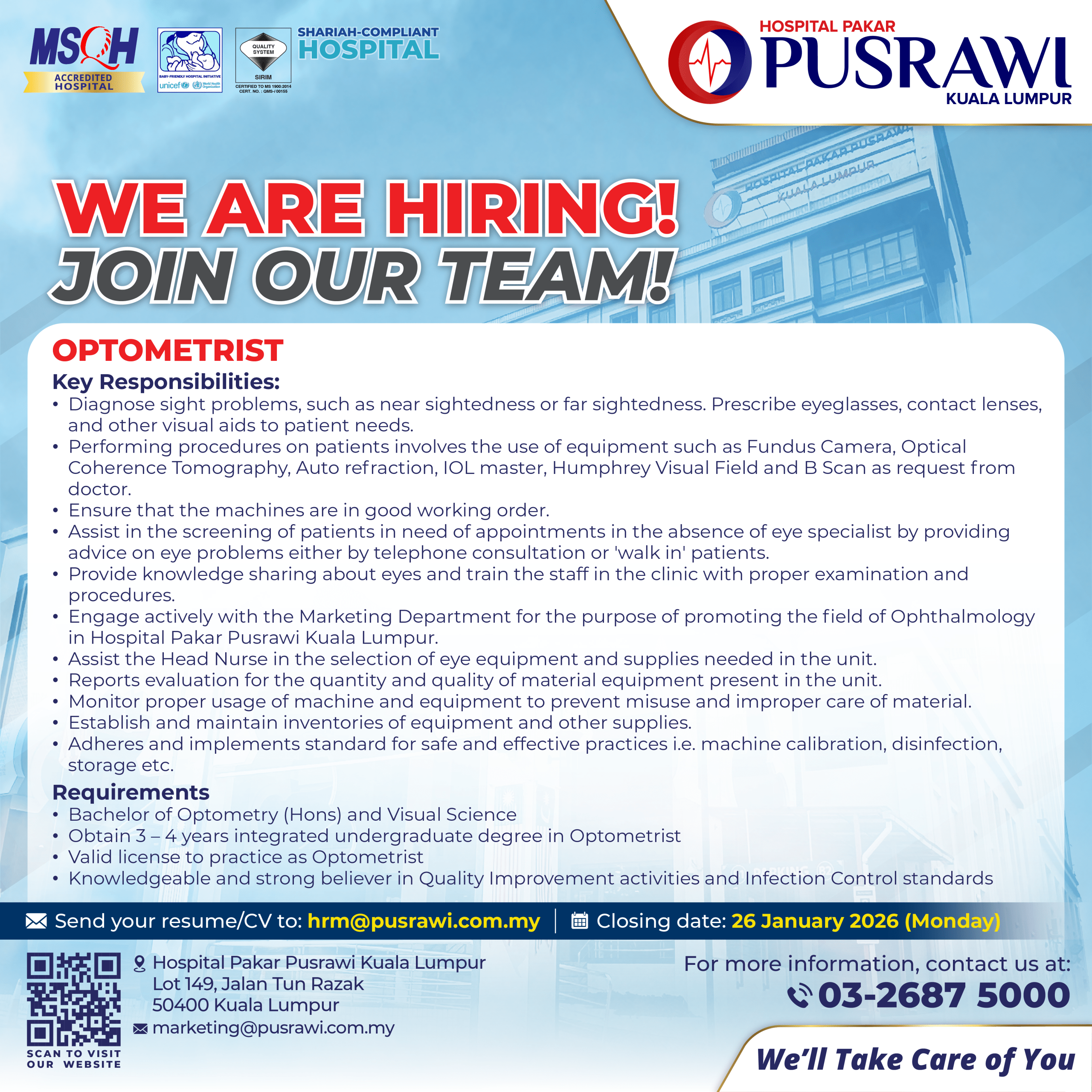 Kerjaya HUMAN RESOURCE EXECUTIVE OPTOMETRIST PHARMACIST CARDIOVASCULAR TECHNOLOGIST SPEECH THERAPIST SESSIONAL PSYCHOLOGIST OCCUPATIONAL THERAPIST